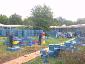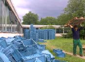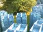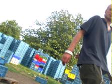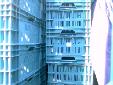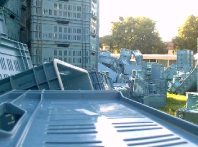 schon nach der ersten material-lieferung war die zukünftige crew mehr als begeistert von dem intensiv strahlenden blau. der innenhof verwandelte sich in eine überwältigende kontrastreiche kulisse; das erste erscheinungsbild nach abgeschlossener lieferung bestand aus einer wilden blauen brandung deren ausläufer die grundfläche der zukünftigen base langsam über-fluteten. im hintergrund ergab sich eine urbane hochhauskulisse, die basis (-container)für eine moderne/neue zivilisation. das spielerische aber erbarmungslose materialprüfen, artete schnell in einen prüfstand für besondere eigen-schaften der produktpalette von europoolsystem aus. |