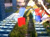 log_buch_eintrag_ <_log_start> die base_landschaft die umgebung der base sollte den blick des betrachters genauso fesseln/umherschweifen lassen, wie die bilderflut im inneren der base. die vorherrschende farbe der gesamten base war natürlich europoolsystem-blau die ursprüngliche vegetation des innenhofes bildete einen grünen rahmen um die base, in welchem das blau ausuferte oder verebbte. (grüner rahmen=macro_funktion der sende_foto_digi_cam) die landschaft war unterschiedlich strukturiert. an manchen stellen bunt und chaotisch, anderswo geometrisch und monoton. die grundfläche war ein raster, das durch die kiste bestimmt war. es entstand ein miniatur weltraum, der von unserer vorstellung/leben geprägt war. |